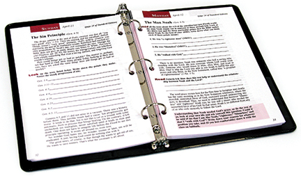 One of the most useful parts of the Sabbath School lesson curriculum is the loose-leaf Teacher's Bible Study Guide. The content is identical with the standard Adult Sabbath School Teacher's Bible Study Guide, but 3-hole punched to make note-taking so much easier. (A quarterly-sized 3-hole binder can be purchased in any office supply store.)